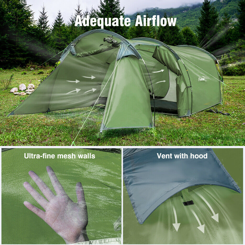 4-Person Camping Tunnel Tent Outdoor Ultralight Waterproof Double-Walled Tent all Season Shelter with Carry Bag