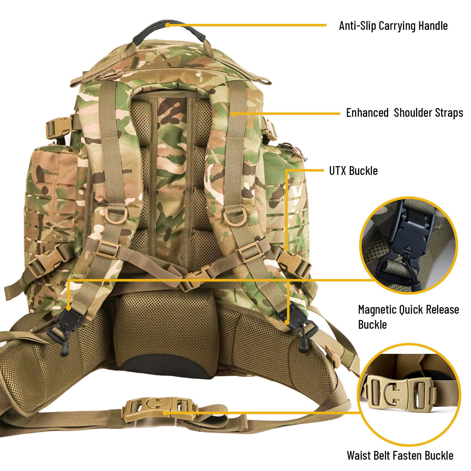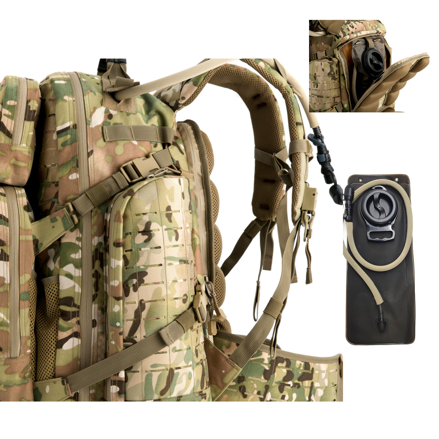 AKMAX Medium 72H 3D Rucksack MOLLE Tactical Assault Outdoor Camping Hiking Backpack with Hydration Bladder