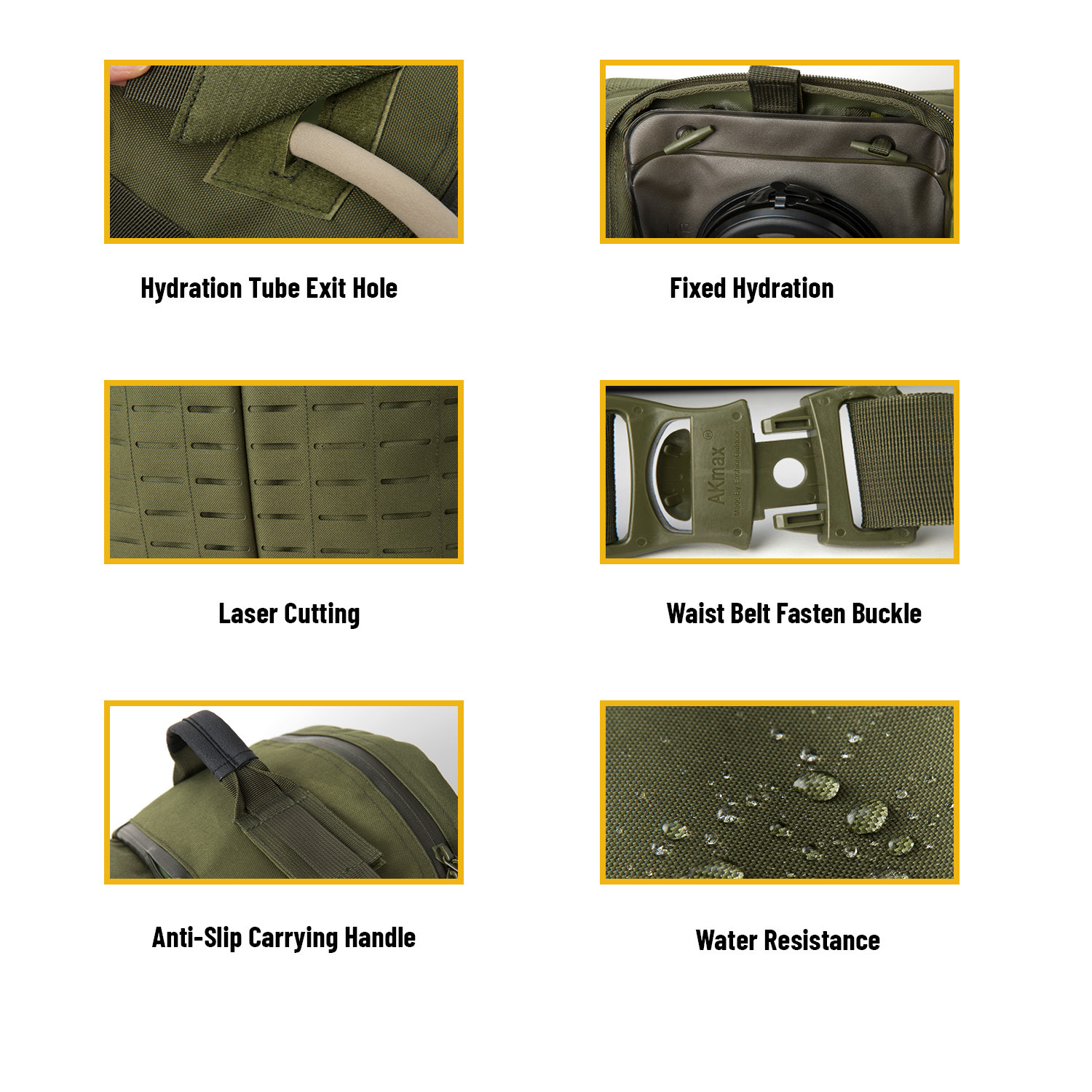 AKMAX Outdoor Camping Hiking 3D Backpack Tactical Assault MOLLE Bag with Hydration Bladder
