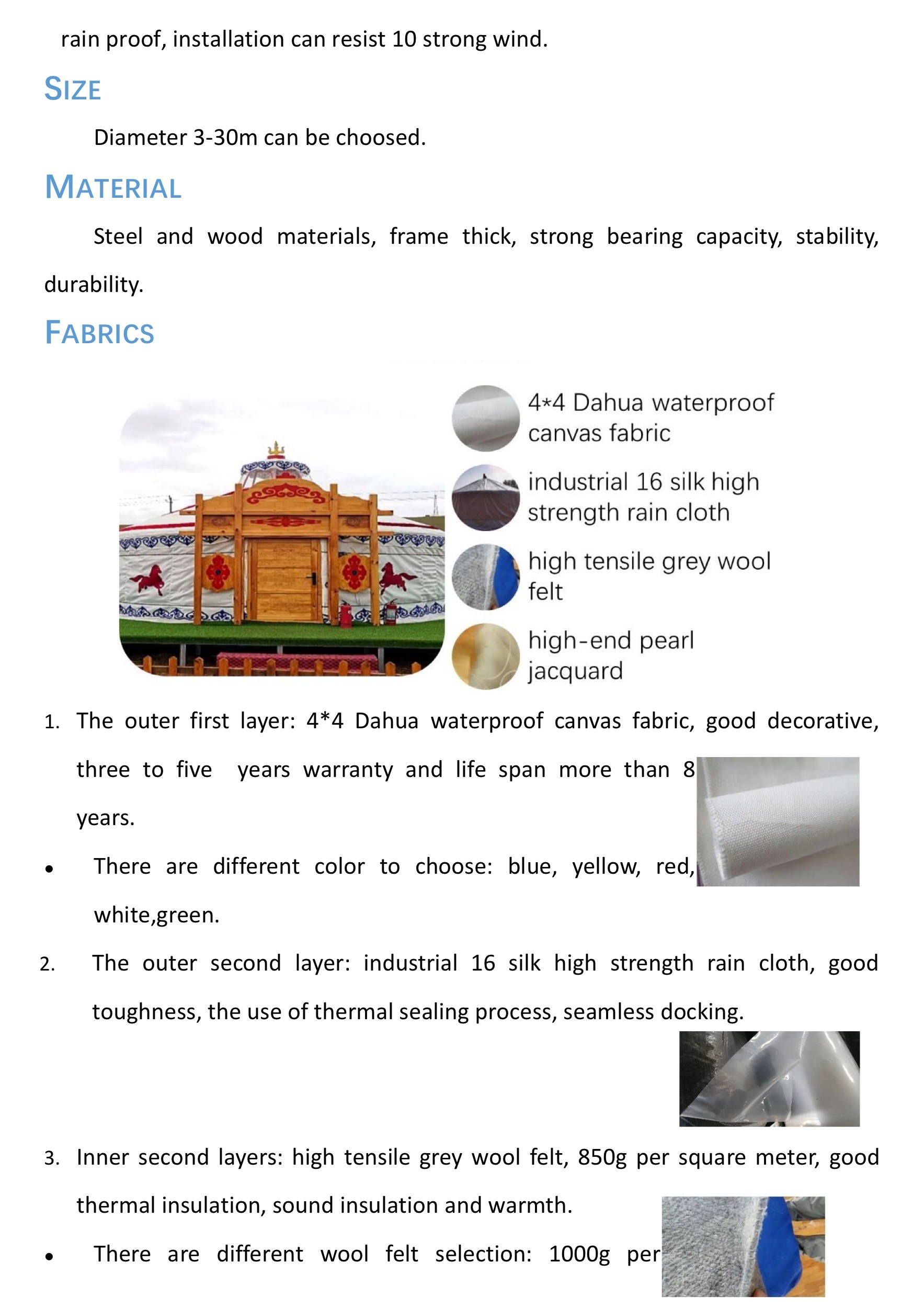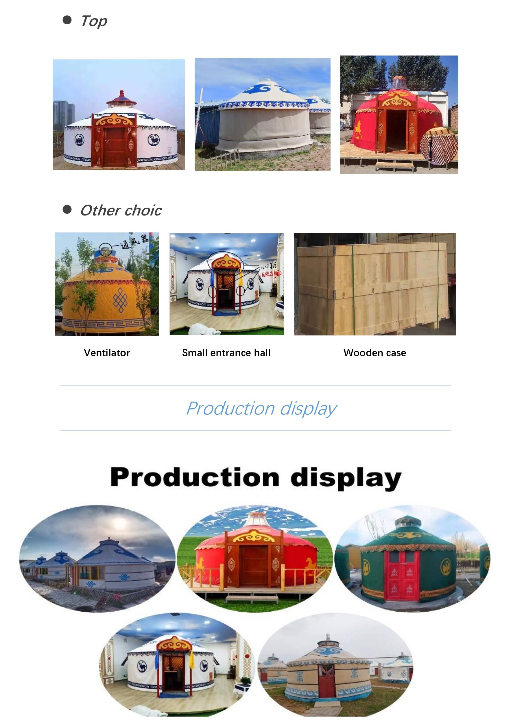 Best Selling Rainproof and Windproof Steel Wood Decrative Ger for Garden Modern Family Camping Tepee