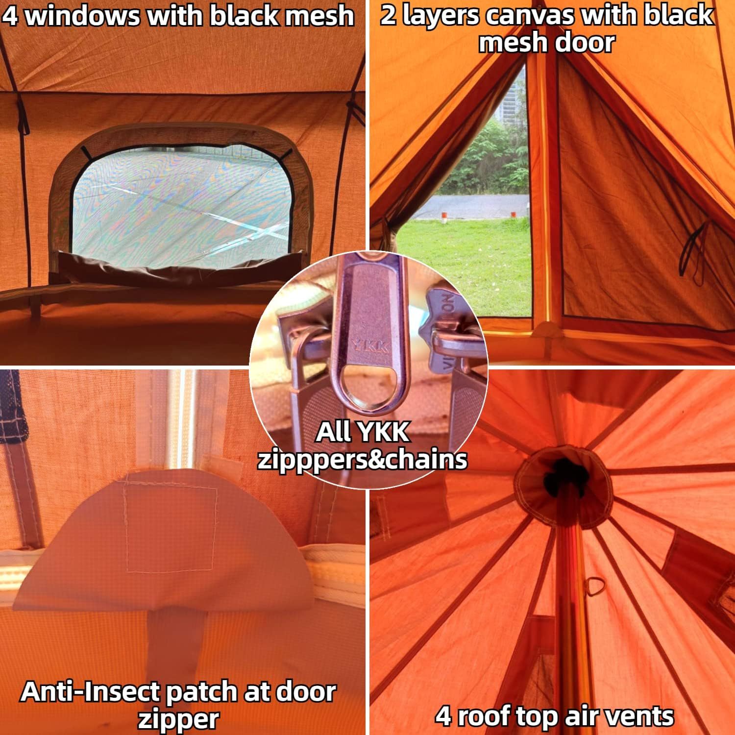 DANCHEL OUTDOOR 4M Canvas Yurt Winter Tent with Stove Jacks for Living Camping Glamping Family Party