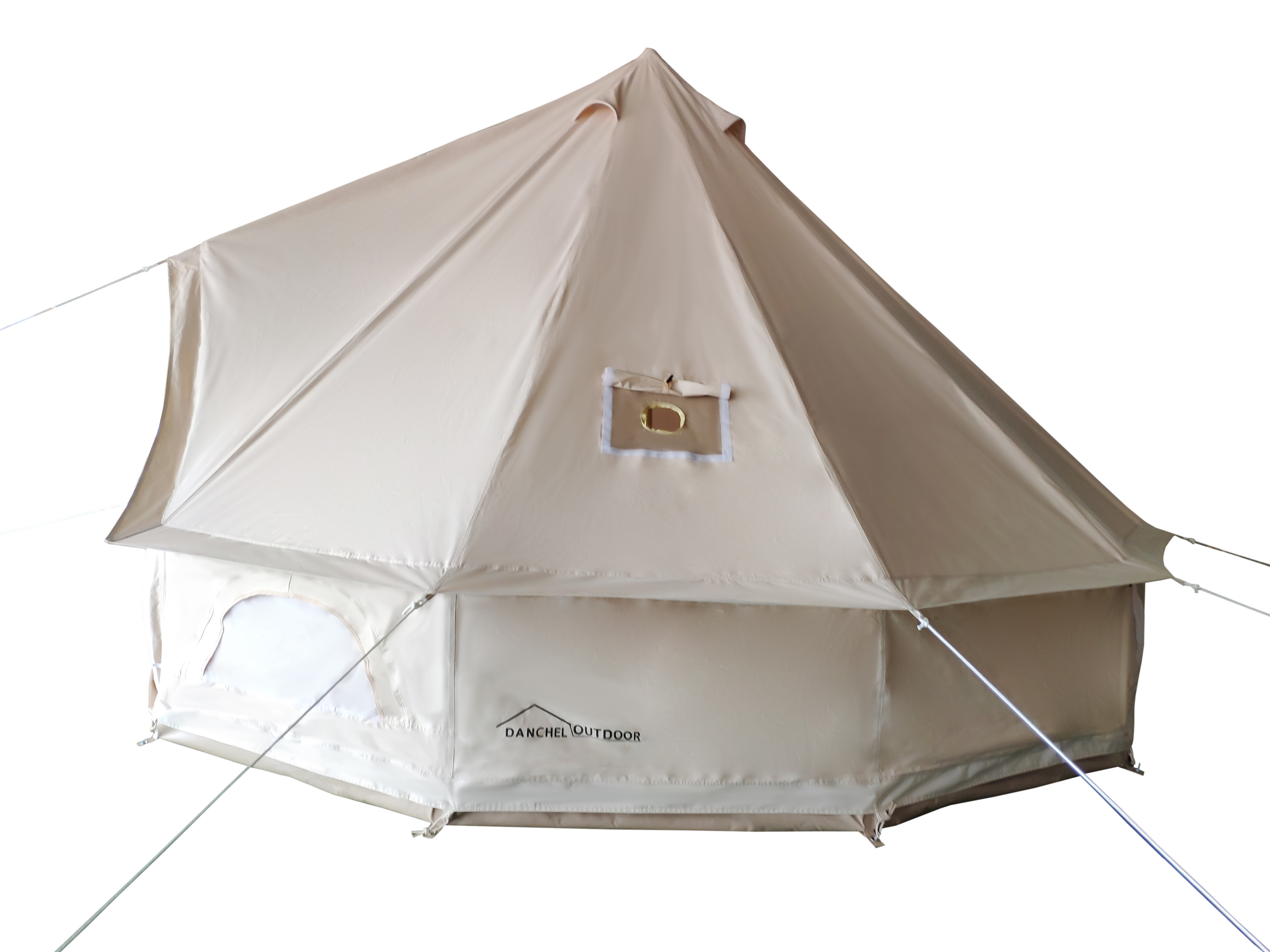 DANCHEL OUTDOOR 4m Oxford Bell Tent Camping Tent Glamping Tent with Two Stove Jacket Stove Hole