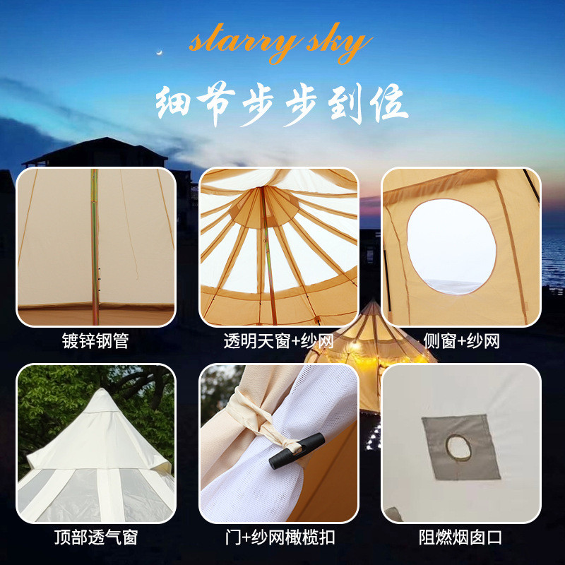 Diameter 4 M Oxford Canvas Outdoor Glamping Luxury Camping 900 D Bell Tent in Ready Stocks