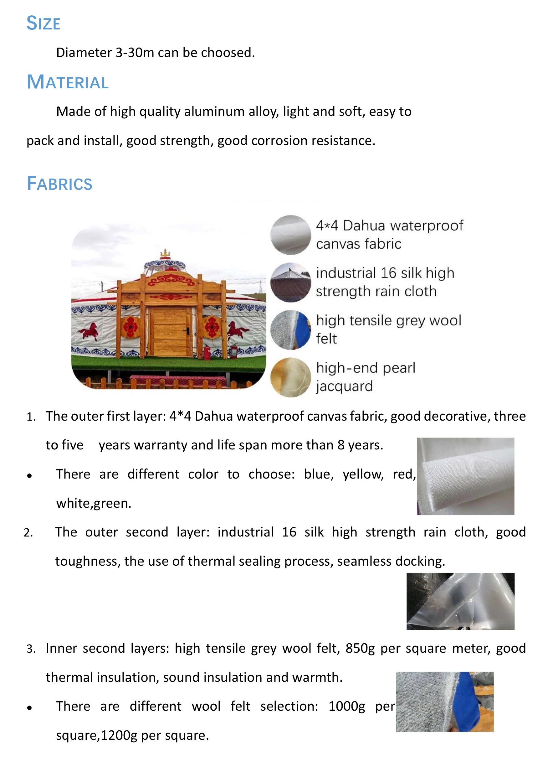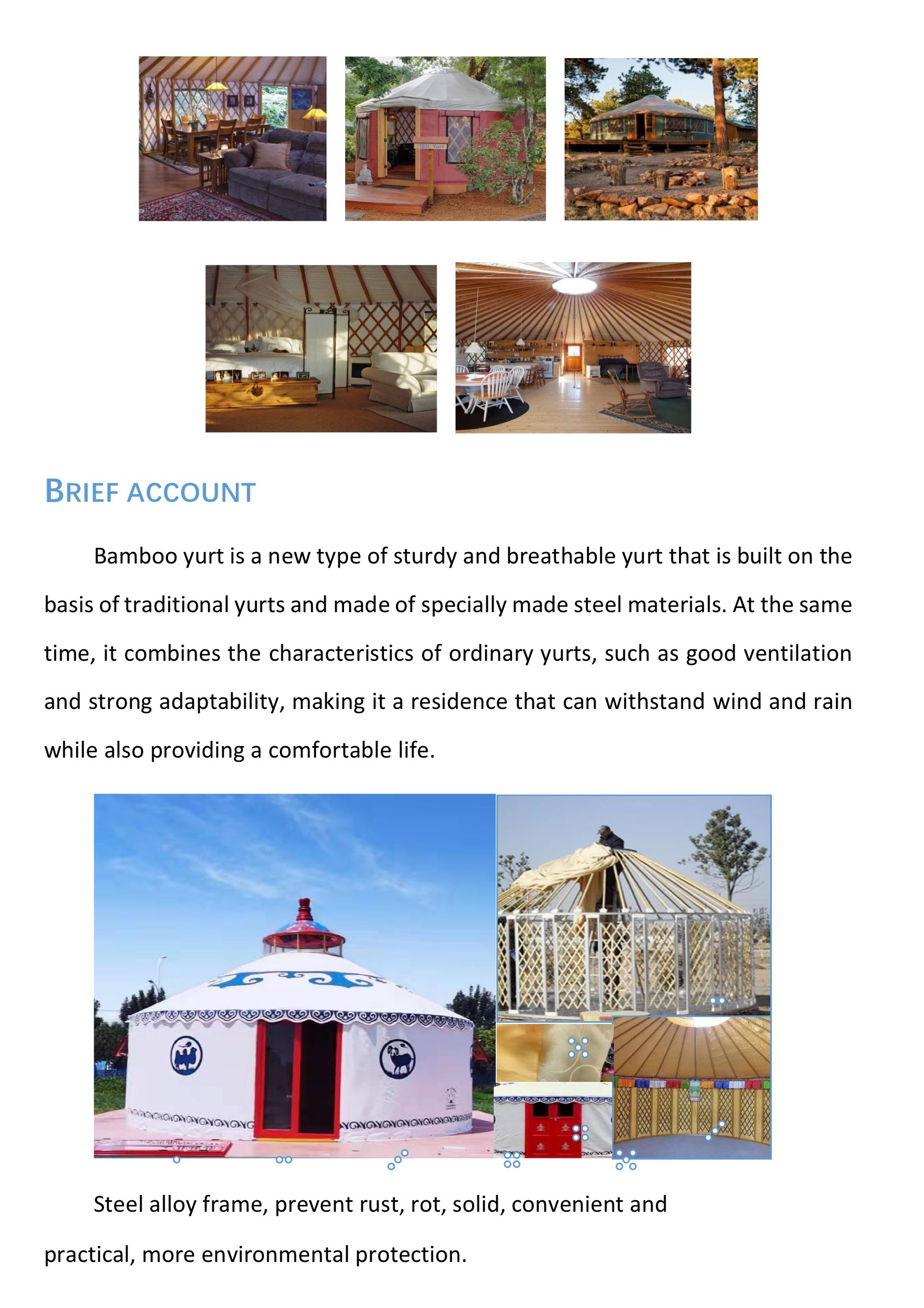 Hot Selling Outdoor Camping Bamboo Structure Mongolian Yurt Tent House for every Scenes