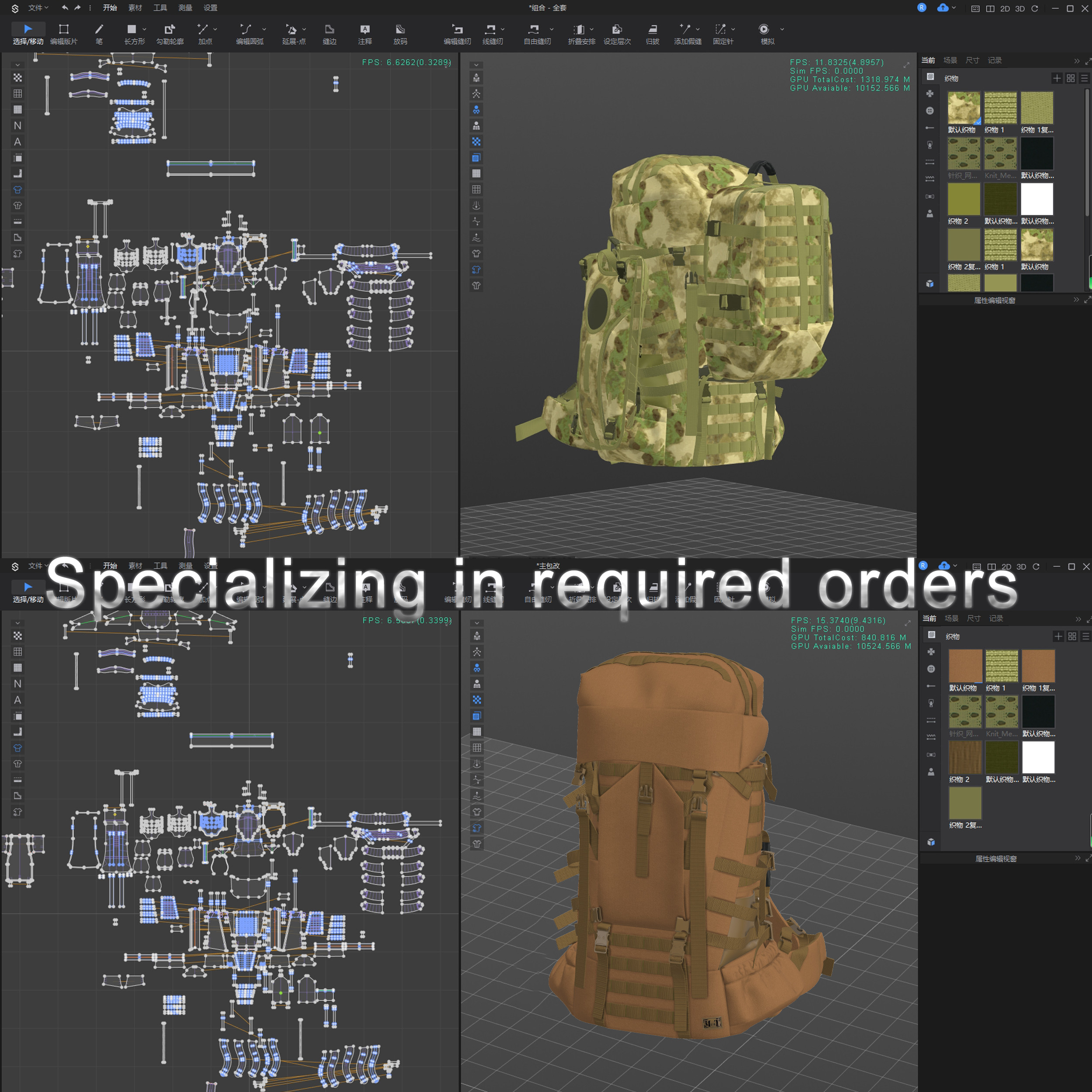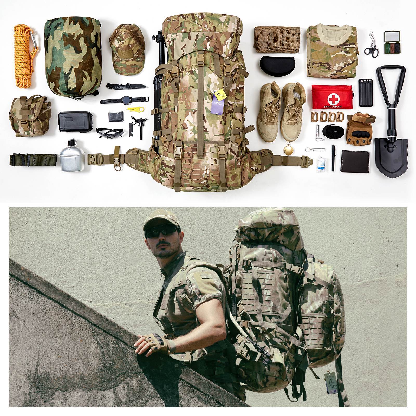 Main Material:1000D rugged multicam camouflage fabric