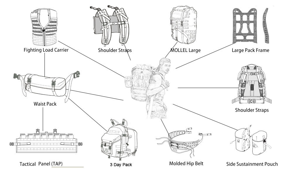 MOLLE Main Bag Large Pack OCP Camouflage 100L External Poly Frame Rucksack