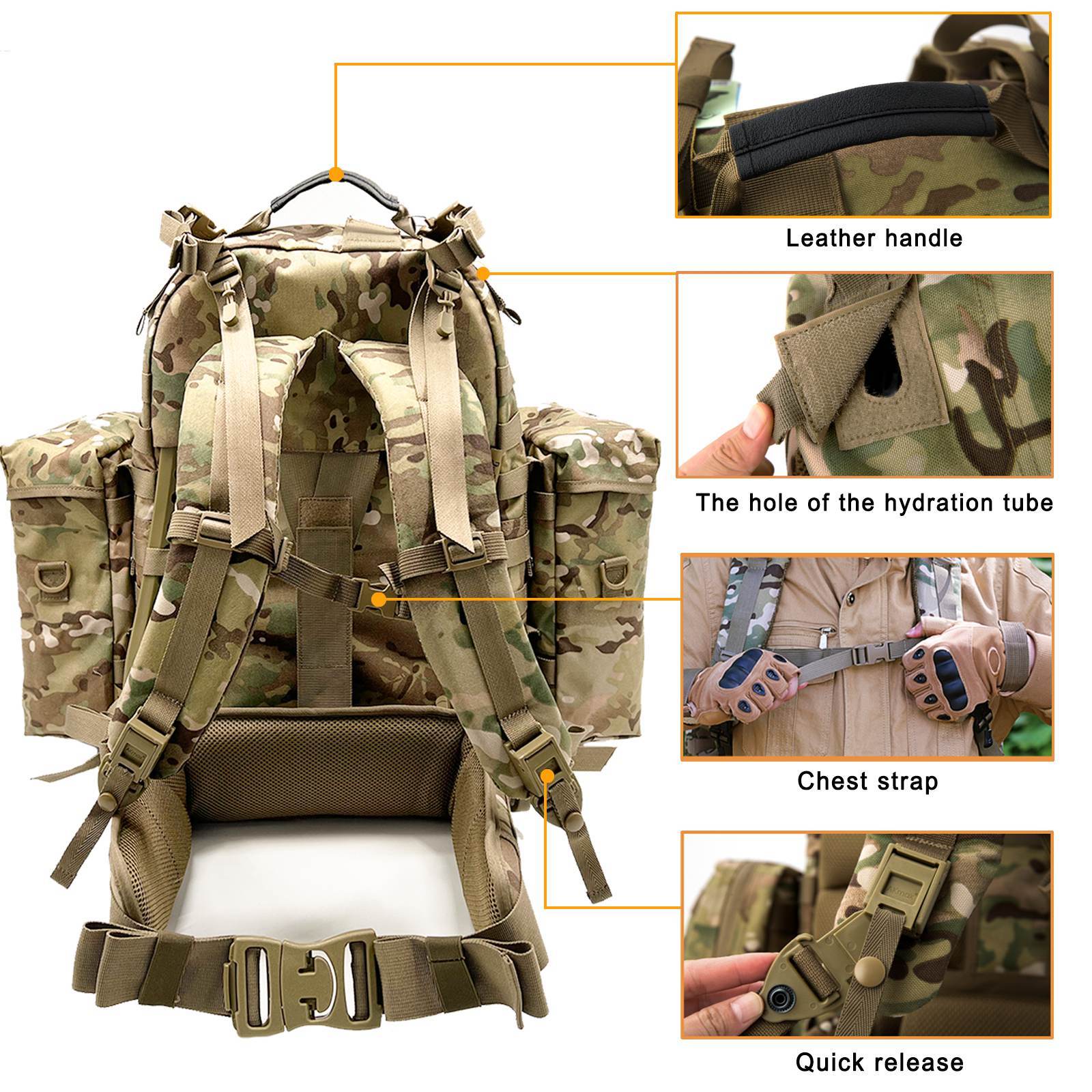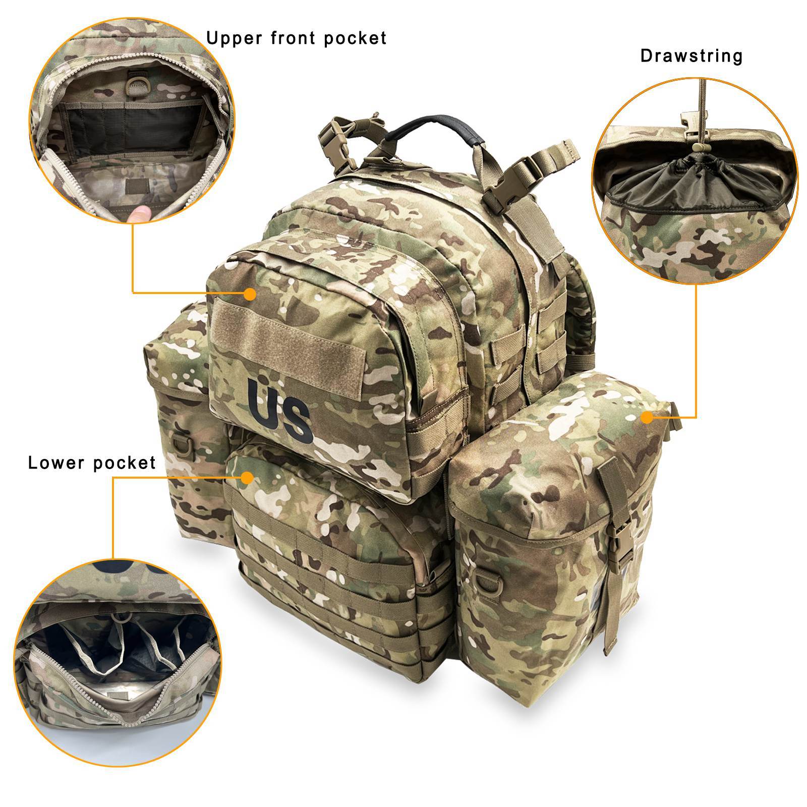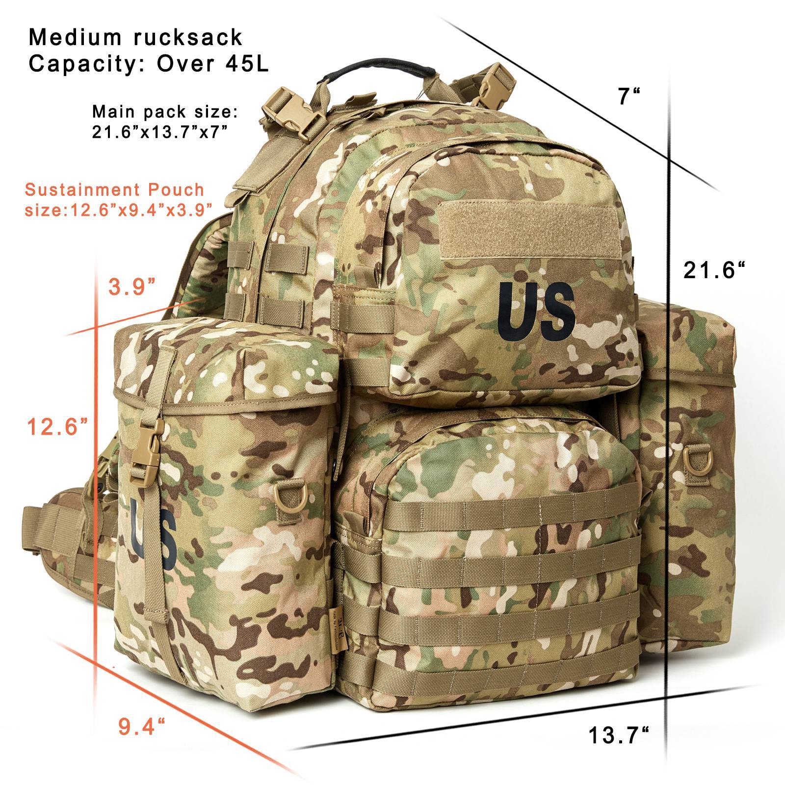 MOLLE Medium Pack Multicam Camouflage 65L External Poly Frame Backpack