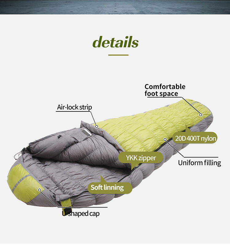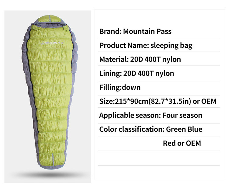 OEM Goose /duck Down Sleeping Bag for Camping 800/1000 Fill Cold Weather Winter Outdoor Waterproof Camp Sleeping Bags Down