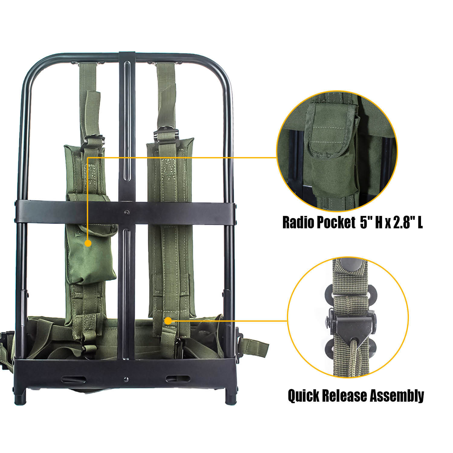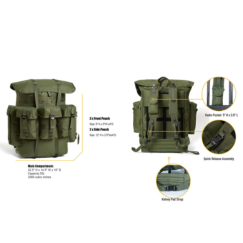Olive Green Modular Backpack Tactical Alice Bag with External Aluminium Frame and Butt Pack