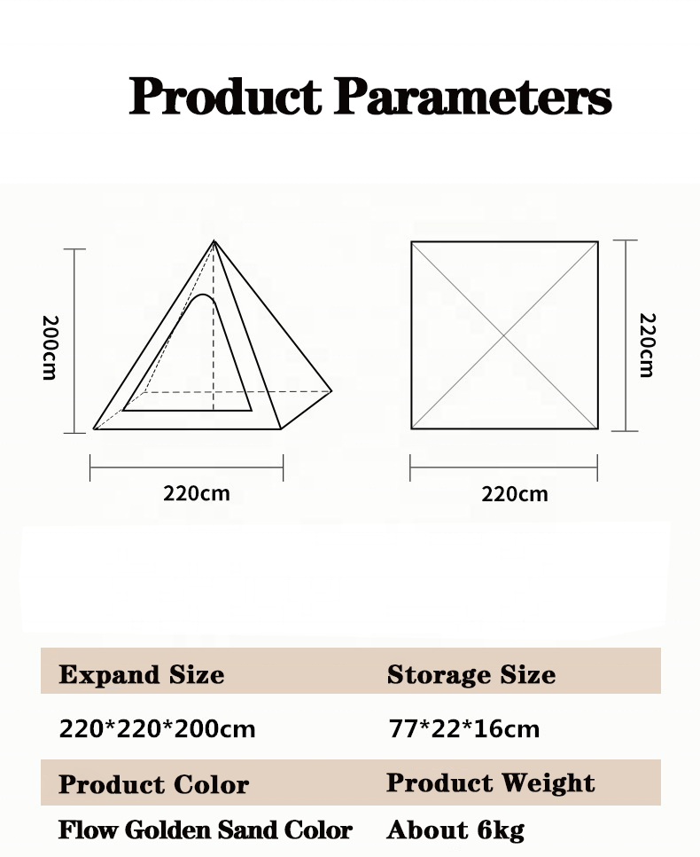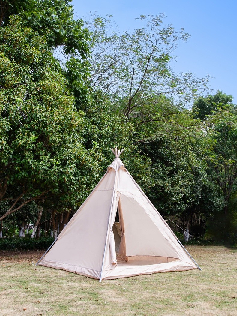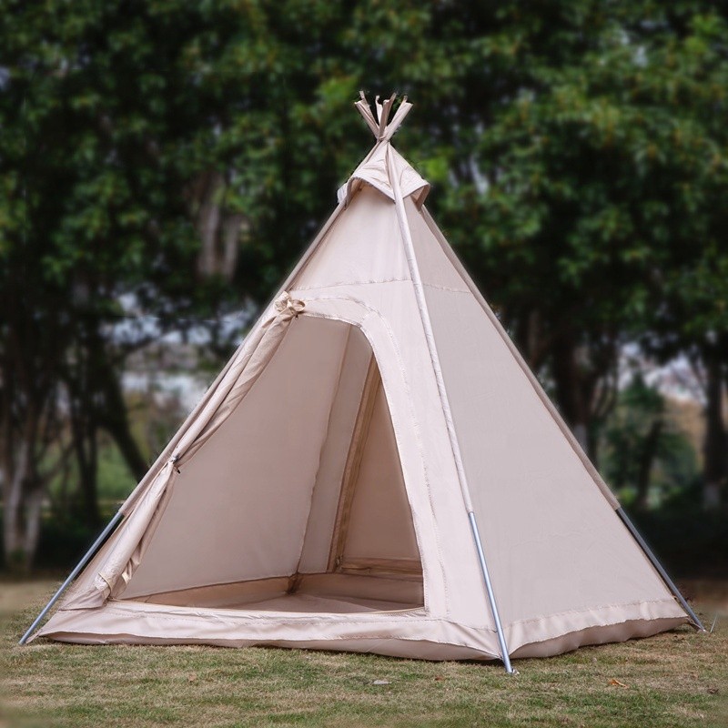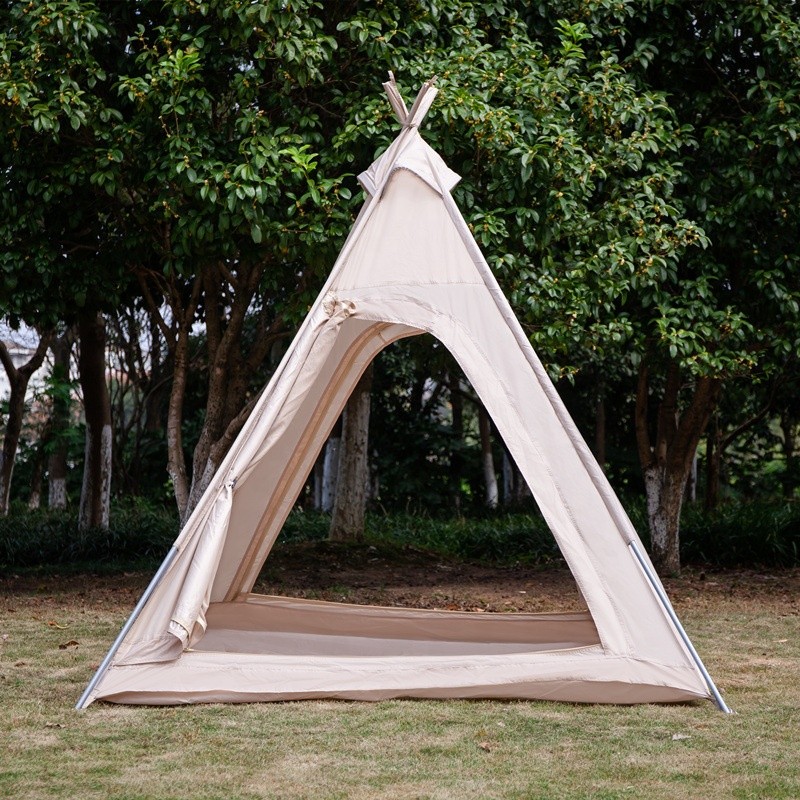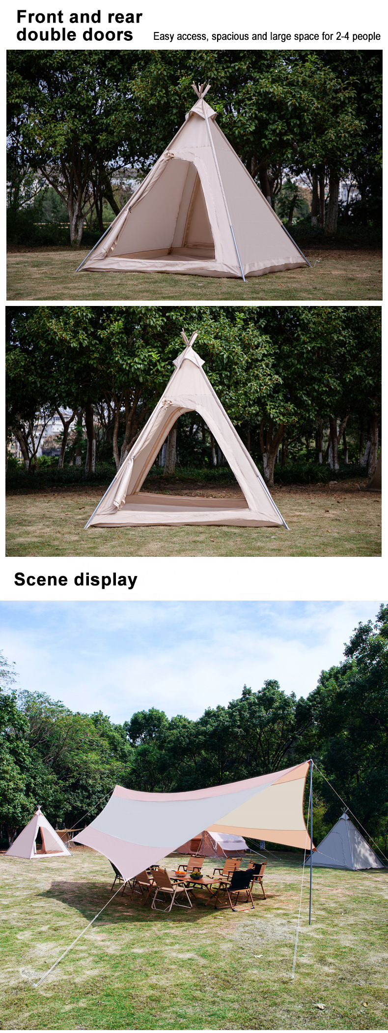 Outdoor Canvas Teepee Lightweight Waterproof TIPI Camping Tent, Pyramid Three Seasons Glamping Tent (Beige, 2.2*2.2M)