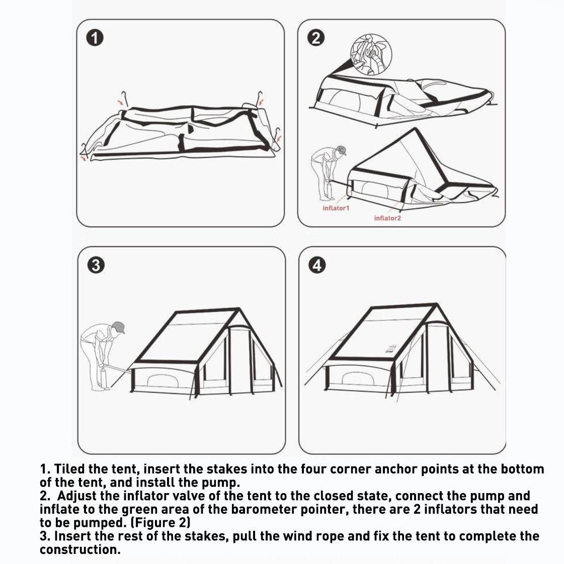 Outdoor Inflatable Air Tent Easy Setup Oxford T/C Tents Family Glamping Cabin Tents for 2/3/4 Person