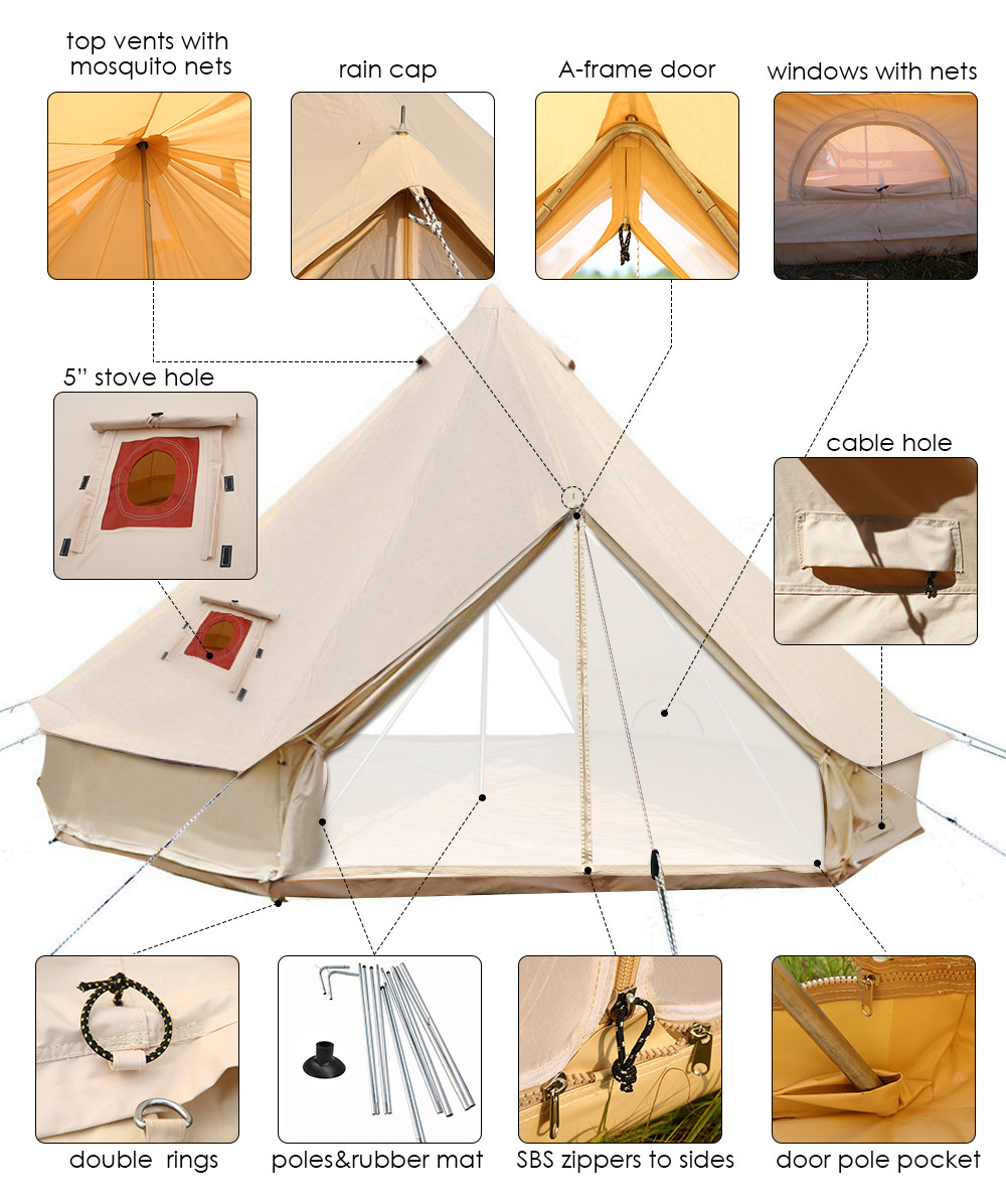 Outdoor Teepee Yurt Glamping 4 Season Cotton Canvas Bell Tent for Luxury Camping