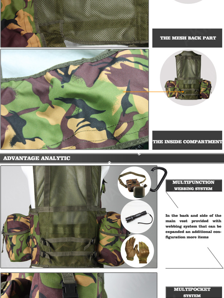 P LCE 90" Webbing Vest Equipment Tactical Assault Vest Combat Gear Plate Carrier Tactical Vest DPM Woodland Camouflage