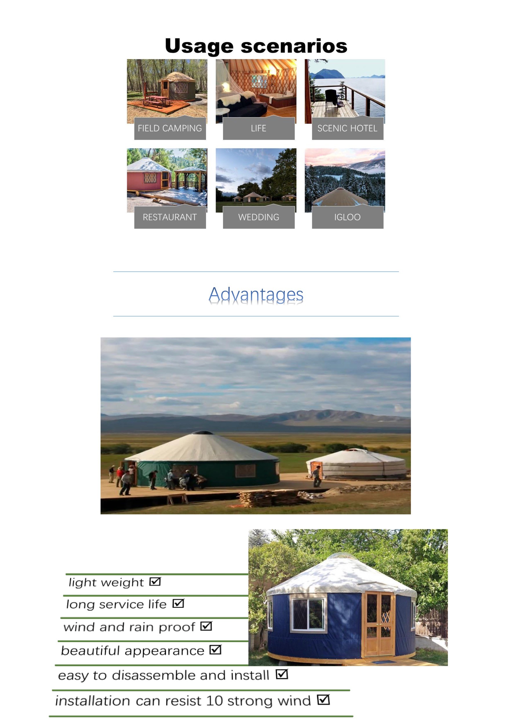 PVC Fabric Luxury Camping Outdoor Prefab Weather Insulated Modern Luxury Mongolian Yurt for Sale
