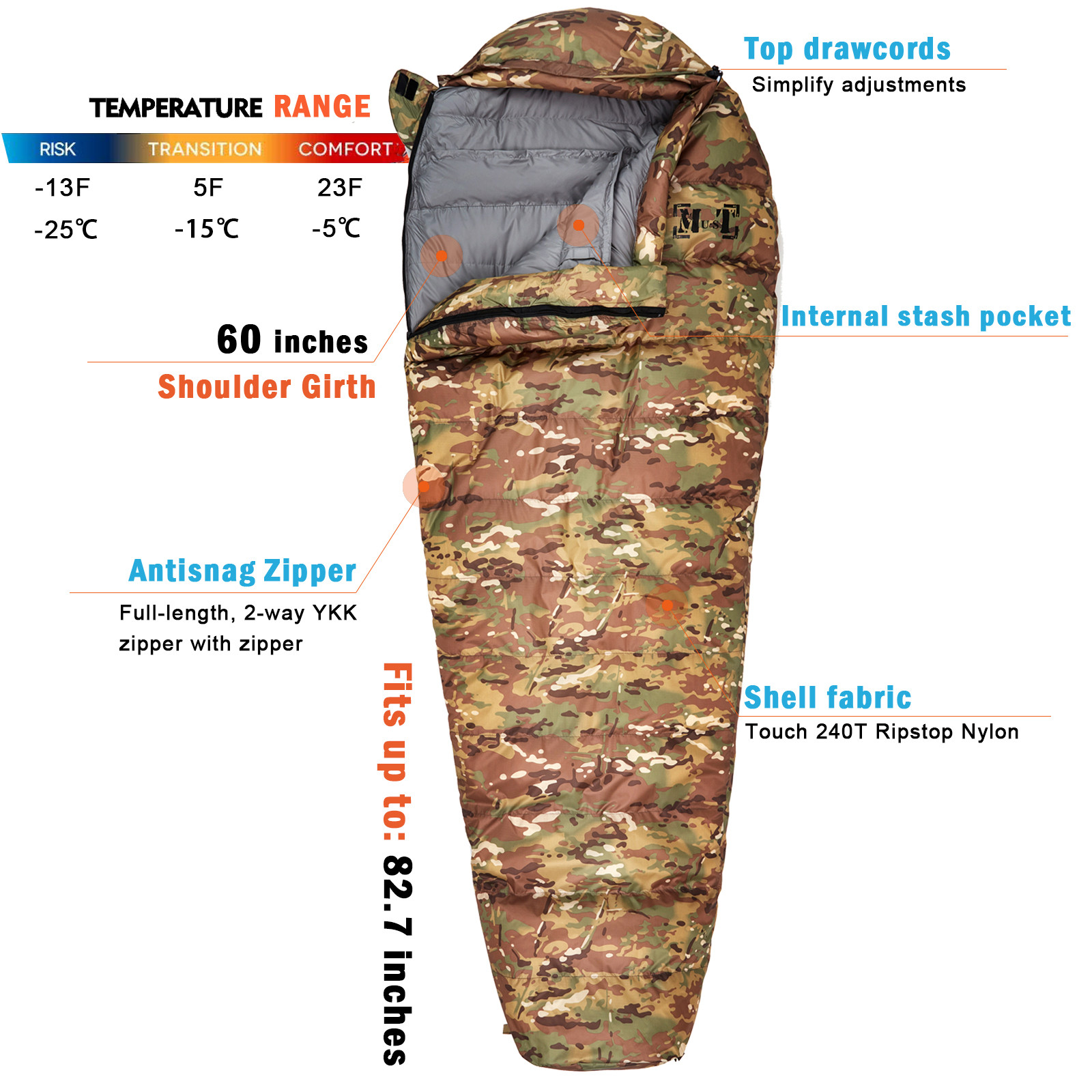 Ranger Down Mummy Anti-Extrem Cold Sleeping Bag Portable Camping Hiking Sleeping Bag Multicam Camouflage