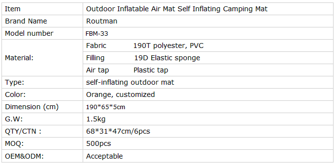 Routman Self Inflating Air Mattress Inflatable Sleeping Pad Outdoor Bed Camping Mat for Camping Hiking FBM-33