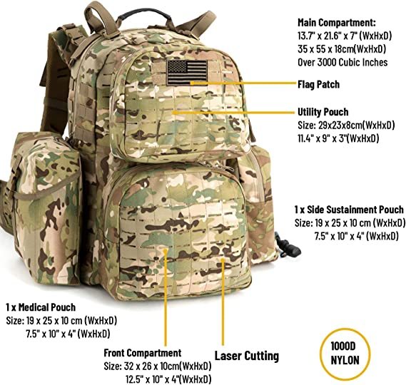 Sky Walker MOLLE High-capacity Waterproof Laser Cutting Assault Backpack&Hydration Pack Tactical Backpack Multicam