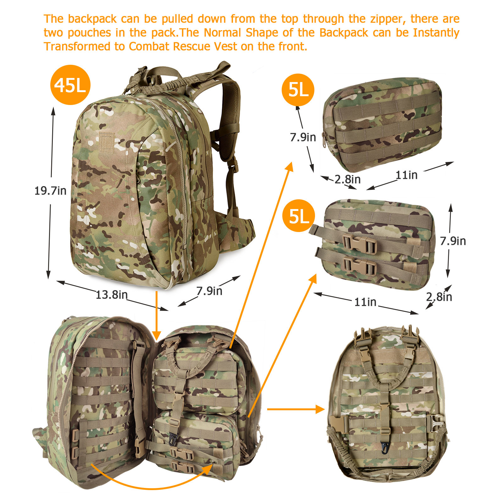Tactical Combat Assault Large 3 Days Backpack Kits Carrying Vest System