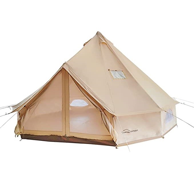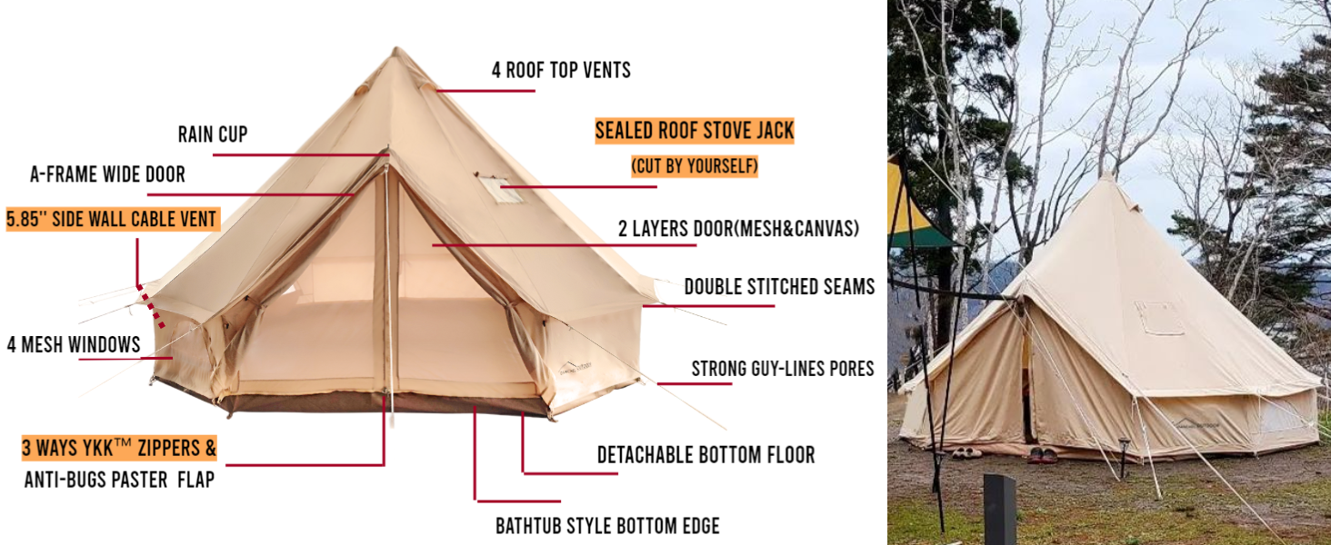 USA Warehouse Cotton Canvas Yurt Tent with DIY Cutting Rooftop Stove Jack Bell Tent for 4 Person Family Glamping DANCHEL OUTDOOR